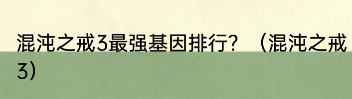 混沌之戒3最强基因排行?(混沌之戒3)