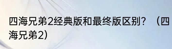 四海兄弟2经典版和最终版区别?(四海兄弟2)