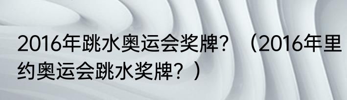 提及2016年跳水奥运会奖牌?(2016年里约奥运会跳水奖牌?)的相关内容,许多人不太了解,来看看小隆的介绍吧!