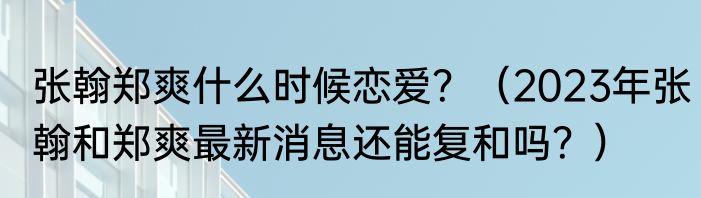 提及张翰郑爽什么时候恋爱?(2023年张翰和郑爽最新消息还能复和吗?)的相关内容,许多人不太了解,来看看小勇的介绍吧!