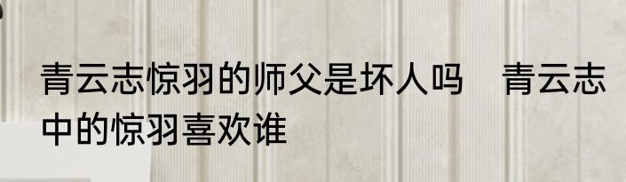 青云志惊羽的师父是坏人吗 青云志中的惊羽喜欢谁