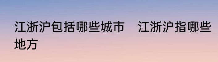 江浙沪包括哪些城市 江浙沪指哪些地方