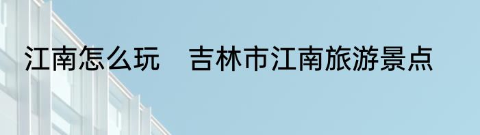 江南怎么玩?