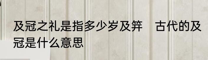 及冠之礼是指多少岁及笄 古代的及冠是什么意思