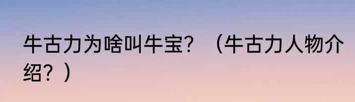 提及牛古力为啥叫牛宝?(牛古力人物介绍?)的相关内容,许多人不太了解,来看看小隆的介绍吧!