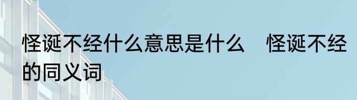 怪诞不经什么意思是什么 怪诞不经的同义词