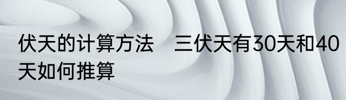 三伏天有30天和40天如何推算?