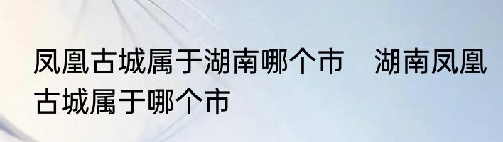 凤凰古城属于哪个城市?