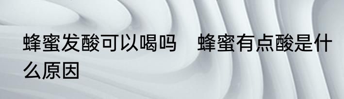 蜂蜜发酸可以喝吗 蜂蜜有点酸是什么原因
