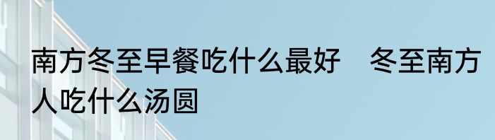南方冬至早餐吃什么最好 冬至南方人吃什么汤圆