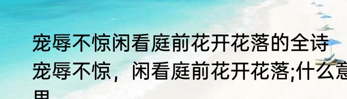 宠辱不惊闲看庭前花开花落的全诗 宠辱不惊,闲看庭前花开花落;什么意思