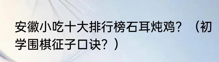 提及安徽小吃十大排行榜石耳炖鸡?(初学围棋征子口诀?)的相关内容,许多人不太了解,来看看小悌的介绍吧!