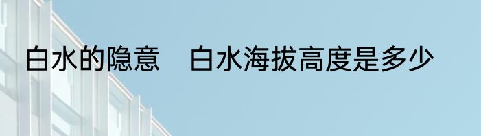 白水的隐意 白水海拔高度是多少