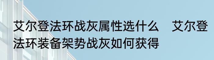 艾尔登法环战灰属性选什么 艾尔登法环装备架势战灰如何获得
