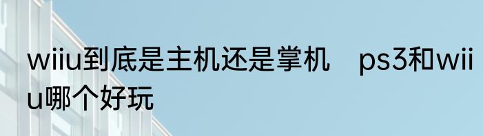 wiiu到底是主机还是掌机 ps3和wiiu哪个好玩