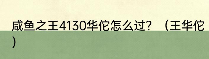咸鱼之王4130华佗怎么过?(王华佗)