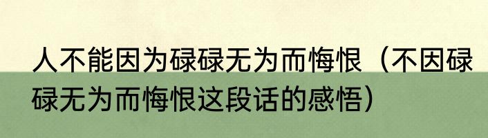 人不能因为碌碌无为而悔恨(不因碌碌无为而悔恨这段话的感悟)