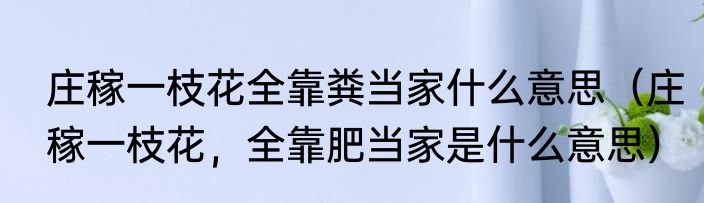 庄稼一枝花全靠粪当家什么意思(庄稼一枝花,全靠肥当家是什么意思)