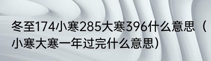 冬至174小寒285大寒396什么意思(小寒大寒一年过完什么意思)