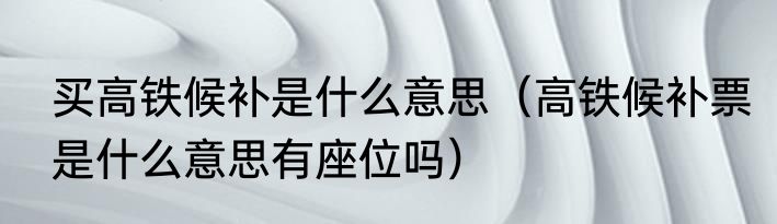 买高铁候补是什么意思(高铁候补票是什么意思有座位吗)