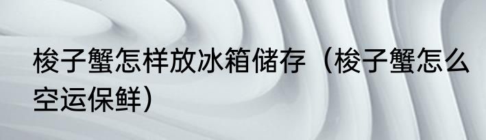 梭子蟹怎样放冰箱储存(梭子蟹怎么空运保鲜)