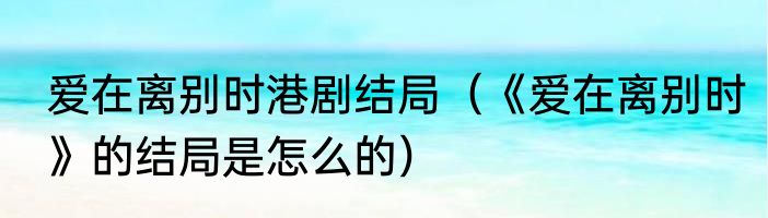 爱在离别时港剧结局(《爱在离别时》的结局是怎么的)