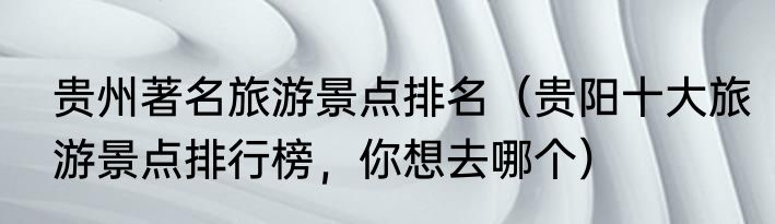 贵州著名旅游景点排名(贵阳十大旅游景点排行榜,你想去哪个)