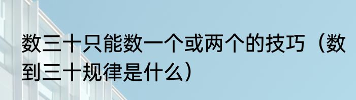 数三十只能数一个或两个的技巧(数到三十规律是什么)