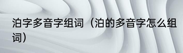 泊字多音字组词(泊的多音字怎么组词)