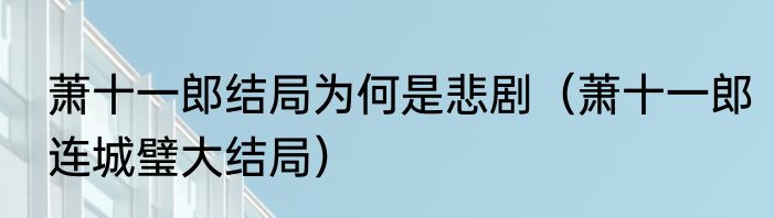 萧十一郎结局为何是悲剧(萧十一郎连城璧大结局)