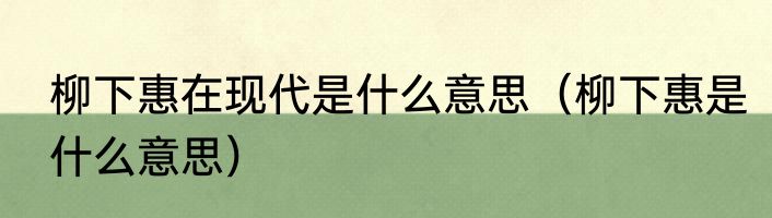 柳下惠在现代是什么意思(柳下惠是什么意思)