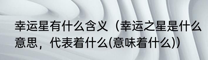 幸运之星是什么意思,代表着什么(意味着什么)?