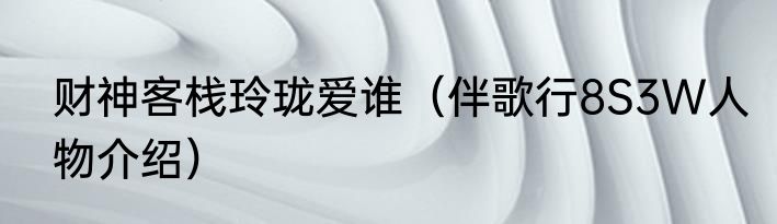财神客栈玲珑爱谁(伴歌行8S3W人物介绍)