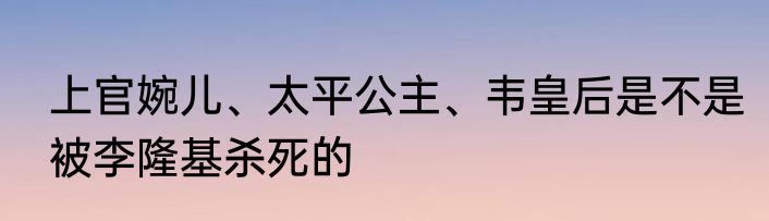 上官婉儿、太平公主、韦皇后是不是被李隆基杀死的?