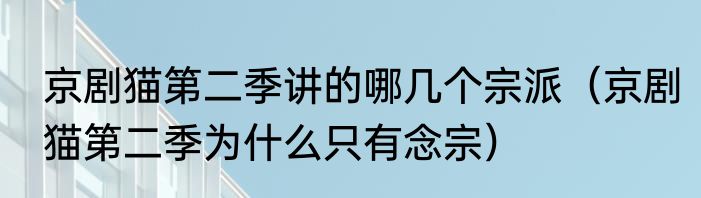 京剧猫第二季讲的哪几个宗派(京剧猫第二季为什么只有念宗)
