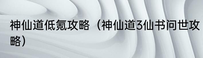 神仙道低氪攻略(神仙道3仙书问世攻略)