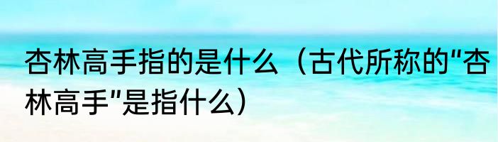 杏林高手指的是什么(古代所称的“杏林高手”是指什么)