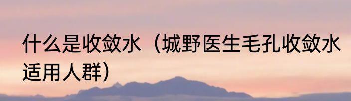 什么是收敛水(城野医生毛孔收敛水适用人群)