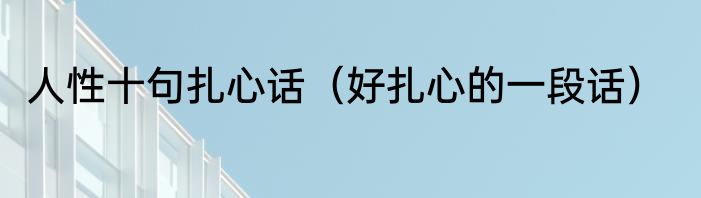 人性十句扎心话?