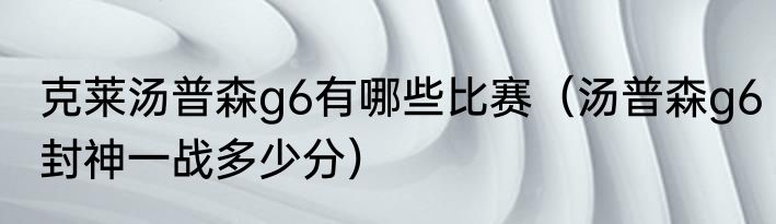 克莱汤普森g6有哪些比赛(汤普森g6封神一战多少分)