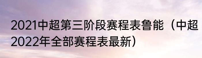 2021中超第三阶段赛程表鲁能(中超2022年全部赛程表最新)