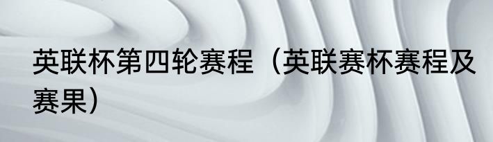 英联杯第四轮赛程(英联赛杯赛程及赛果)