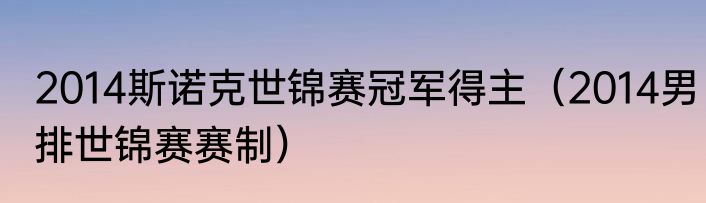 2014斯诺克世锦赛冠军得主(2014男排世锦赛赛制)