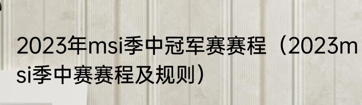 2023年msi季中冠军赛赛程(2023msi季中赛赛程及规则)