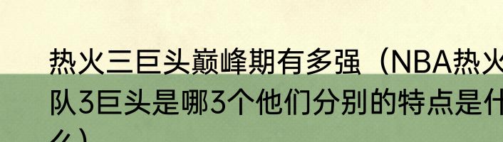 热火三巨头巅峰期有多强(NBA热火队3巨头是哪3个他们分别的特点是什么)