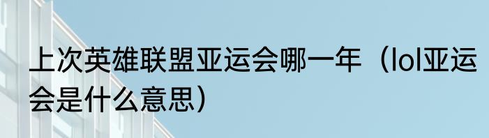 上次英雄联盟亚运会哪一年(lol亚运会是什么意思)