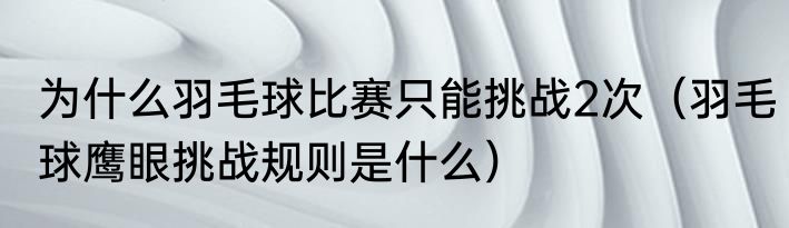 为什么羽毛球比赛只能挑战2次(羽毛球鹰眼挑战规则是什么)