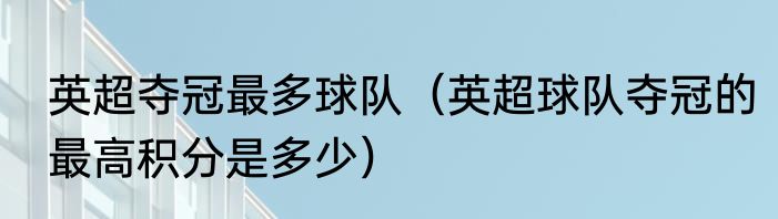 英超夺冠最多球队(英超球队夺冠的最高积分是多少)