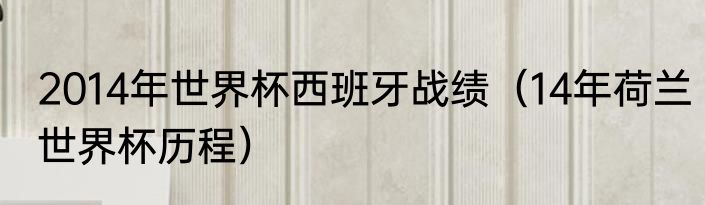 2014年世界杯西班牙战绩(14年荷兰世界杯历程)