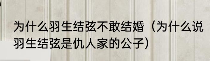 为什么羽生结弦不敢结婚(为什么说羽生结弦是仇人家的公子)